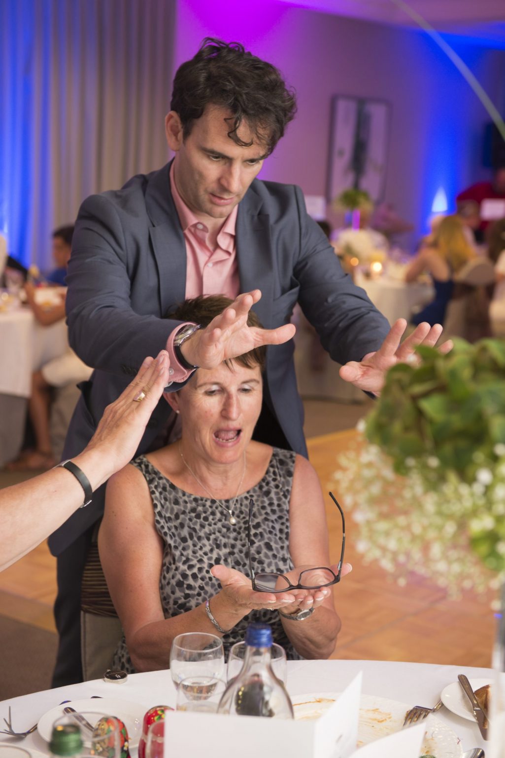 Le magicien et mentaliste invite des volontaires à participer activement à son spectacle, toujours dans une atmosphère bienveillante, sans stress ni embarras. La relation de confiance et la bonne humeur sont les fondations de son approche artistique.